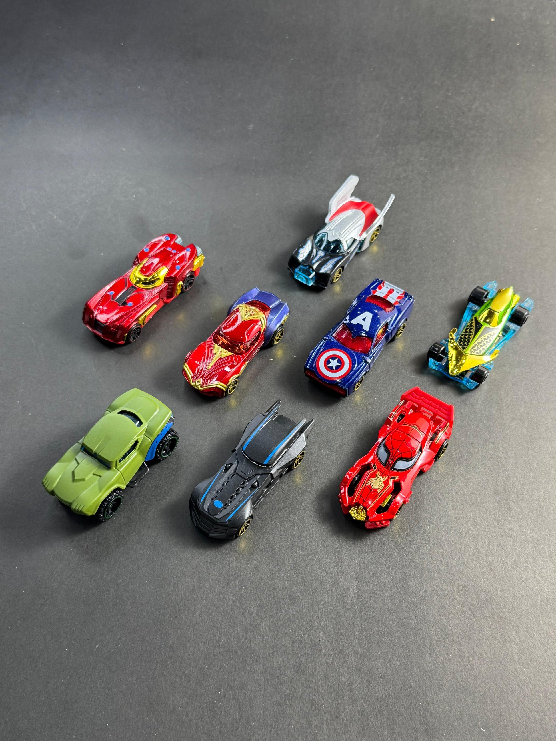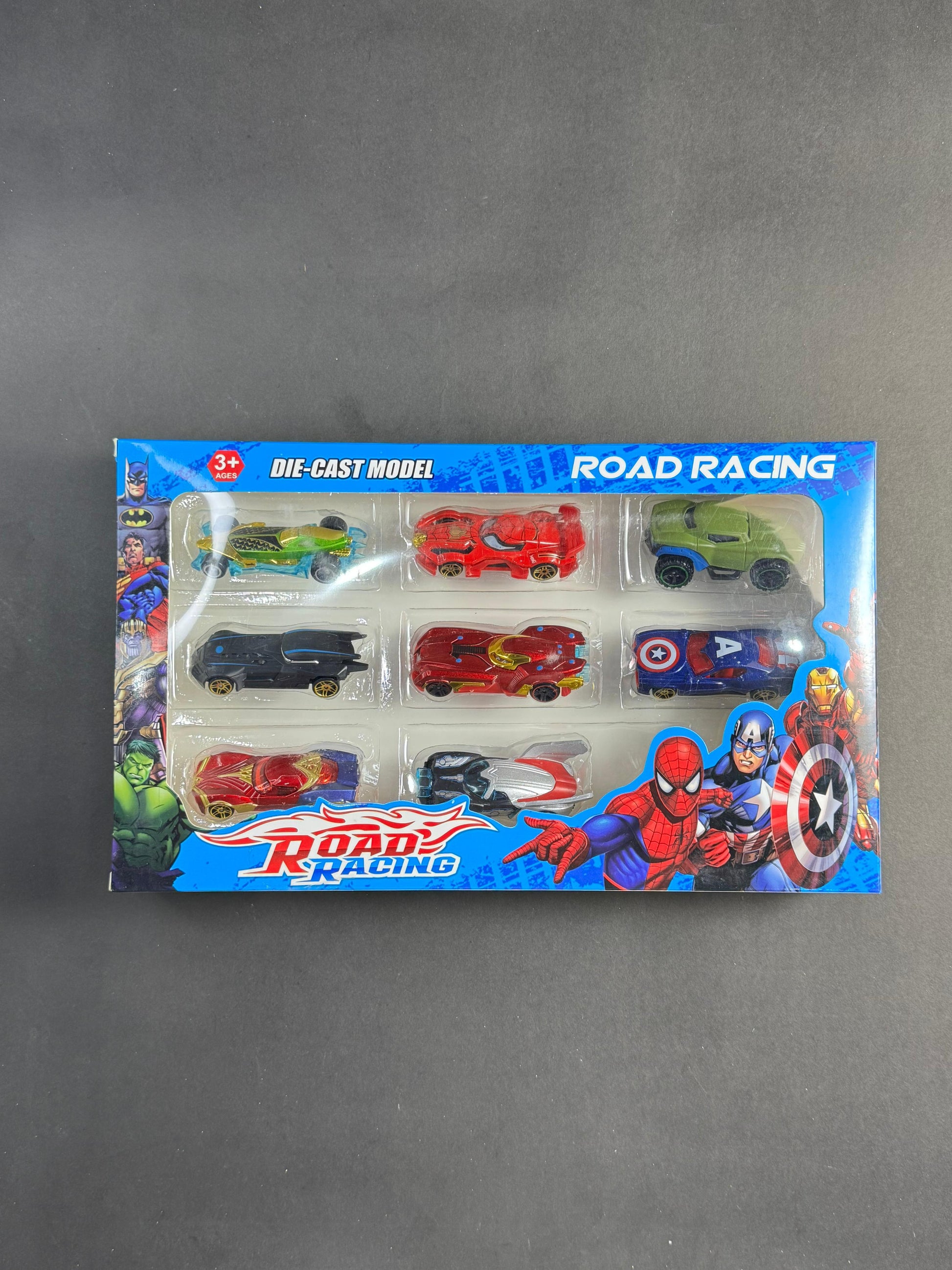 Get ready to race with the power of heroes! π₯ The Superhero Road Racing Car Set features 8 awesome die-cast cars inspired by iconic characters like Spider-Man, Batman, Iron Man, Captain America & more! πβ‘